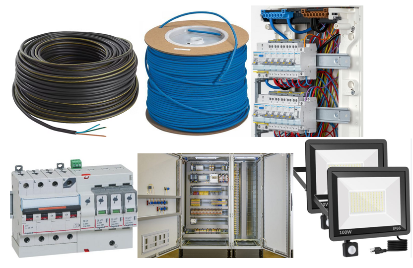 - Tableaux électriques, câbles, prises et dispositifs de protection.